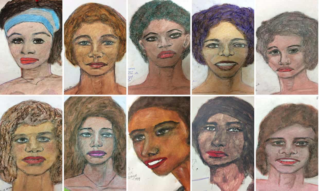 The FBI provided 30 drawings of some of his victims – color portraits that were drawn by Little himself in prison. They are haunting portraits, mostly of black women.
