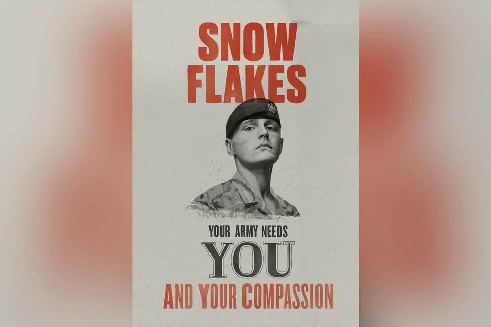 Stephen McWhirter, 28, was clueless to the fact his face was going to be used on a poster stating “snowflakes – the army needs you and your compassion”.